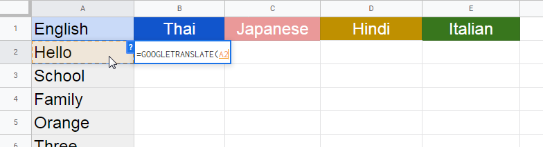 เราสามารถใช้ Google Sheets ทำการแปลภาษาในกรณีที่ต้องการแปลหลายภาษาหรือมีหลายคำ โดยไม่ต้องทำการแปลทีละคำ เพราะเราสามารถใช้ฟังก์ชั่น GOOGLETRANSLATE ซึ่งมีอยู่ใน Google Sheets มาทำการแปลภาษาต่าง ๆ ได้อย่างง่ายดาย
